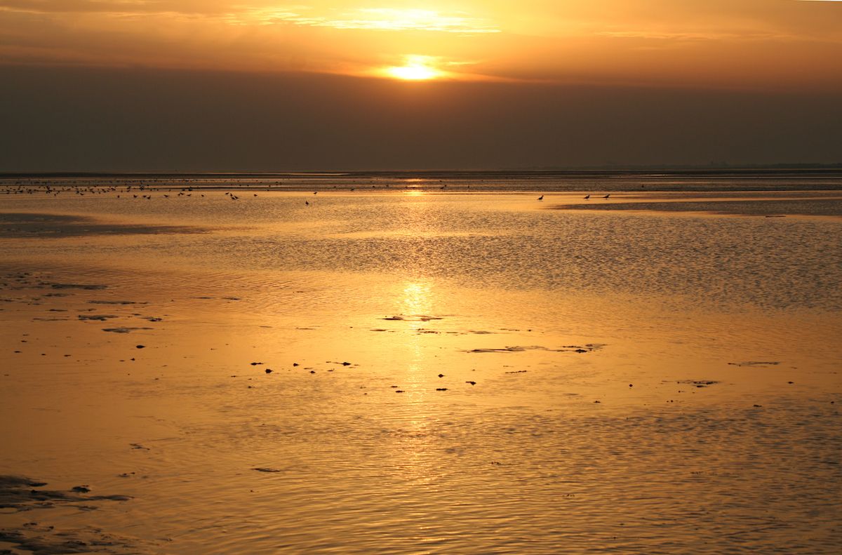 ♦ Die Schönheit der Natur erleben – eine meditative Abend-Wattwanderung, teilweise zum Sonnenuntergang. Wir stimmen uns mit einem Gedicht ein.